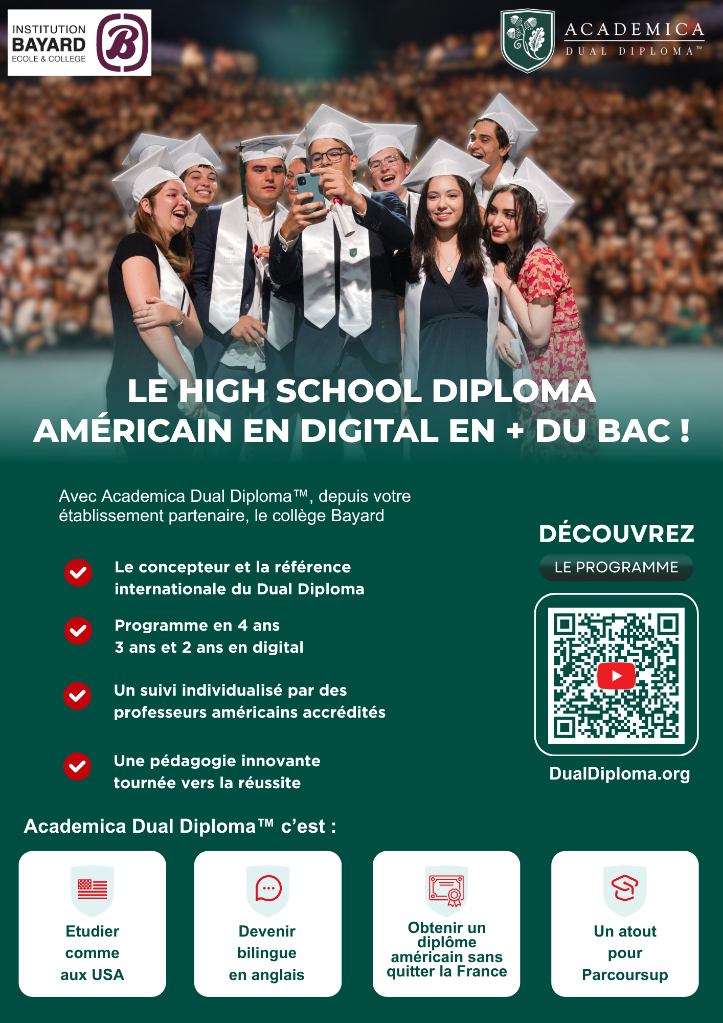 Le collège Bayard est fier d’annoncer son partenariat avec Academica Dual Diploma™ pour la rentrée 2026-2027.