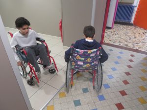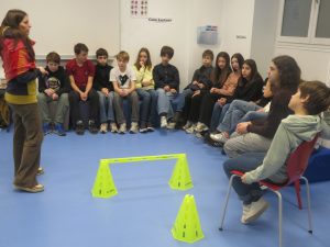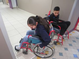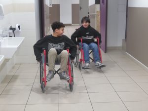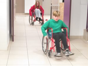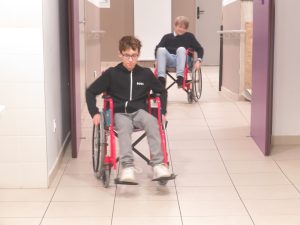 Le but : faire expérimenter à nos élèves la situation de handicap moteur à travers des ateliers concrets de mise en situation :