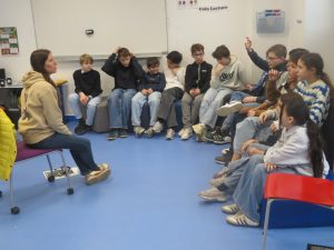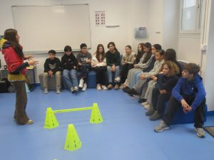 mais aussi en lien avec le projet de Lutte contre le Harcèlement Scolaire, une éducatrice spécialisée, Mme De Roumilly (Association Handiréseaux38), est intervenue auprès de nos élèves de 5è dans le but de leur permettre de changer leur regard sur l’Autre et les difficultés à vivre certaines situations de handicap.
