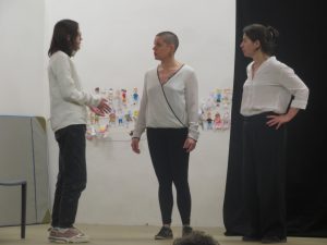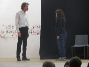 …. et ils sont ensuite invités à venir sur scène – avec les comédiens comme partenaires – pour jouer en direct ce qu’ils avancent.
