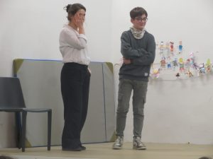 Les acteurs-redevenus-des-adolescents interprètent ainsi des saynètes qui collent ainsi au plus près de la réalité et du vécu des collégiens.