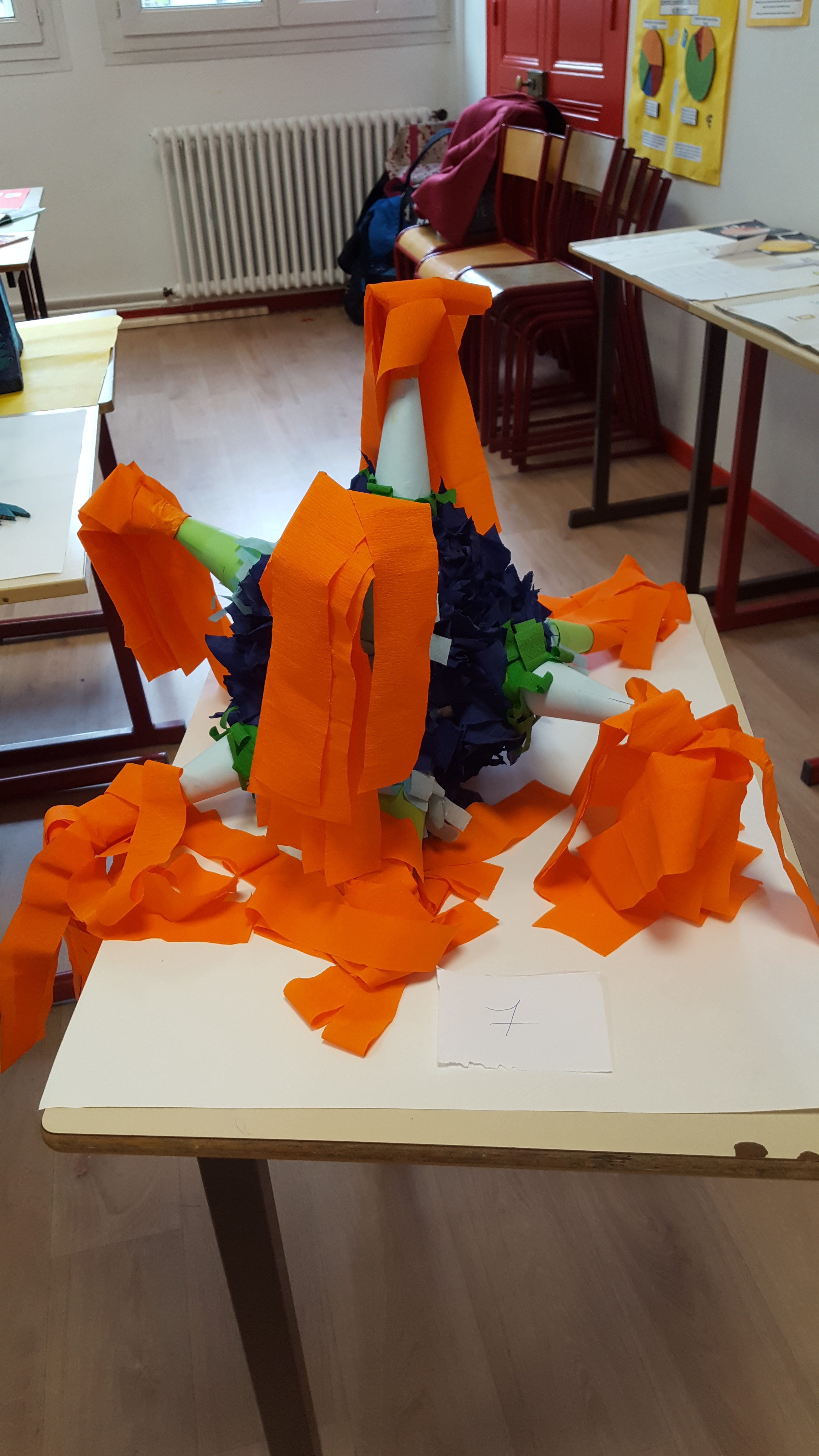 4) BOB(monstres et compagnie)de Nejma, Camilia et Manon; et la piñata traditionnelle avec les 7 pics d’Alban.