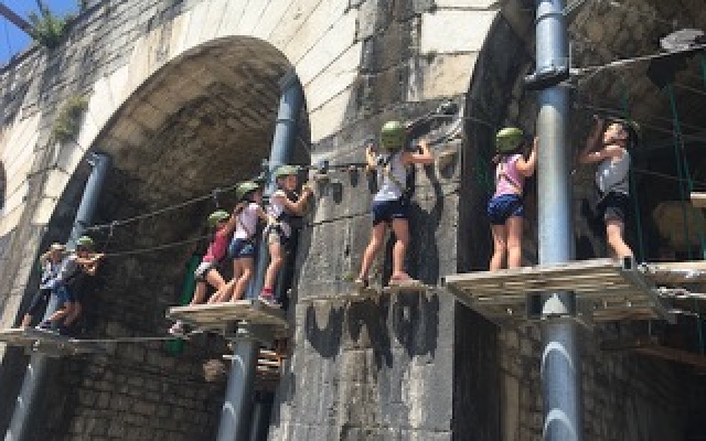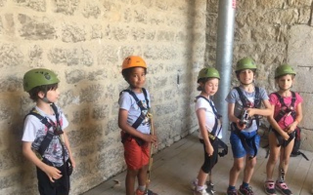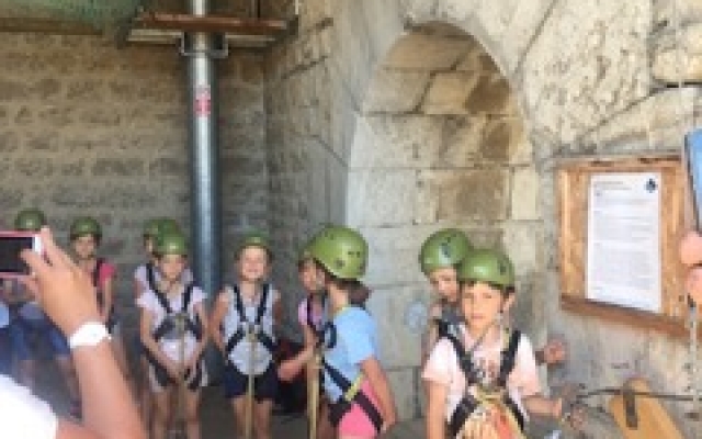 Jeudi 28 juin, les élèves de la classe de CE1 accompagnés de leurs enseignantes et de tous les parents qui le souhaitaient ont gravi les pentes de la Bastille sous un soleil estival. Arrivés au sommet, les élèves se sont lancés dans une course d’orientation endiablée: 13 balises à retrouver! Le pique nique à l’ombre fut bienvenu…. L’après midi, ils ont pu encore s’amuser et vaincre leurs appréhensions pour certains en évoluant dans la “Spéléobox”, braver les obstacles de la “Mission Bastille” et se déplacer dans la “Galerie des sorcières” qui se termine par une tyrolienne! Il fallait ensuite redescendre vers l’école où attendaient tous les parents qui n’ont pas pu les accompagner.