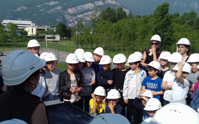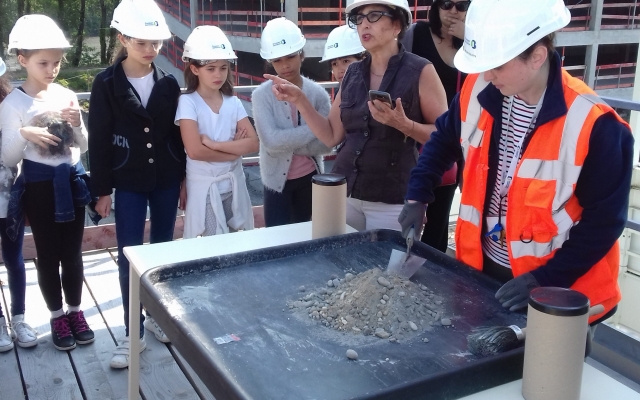 Sur l’invitation d’un papa d’élève, les classes qui le souhaitent sont invitées à se rendre sur le chantier d’X-Pole au bout de la Presqu’île. Accompagnés de Charline et Véronique qui nous font la présentation de leur lieu de travail, les enfants sont ensuite conduits sur le toit de la base-vie, équipés d’un casque et assiste à la fabrication du béton qui se fait sur le chantier à l’aide de centrales.