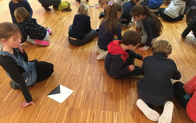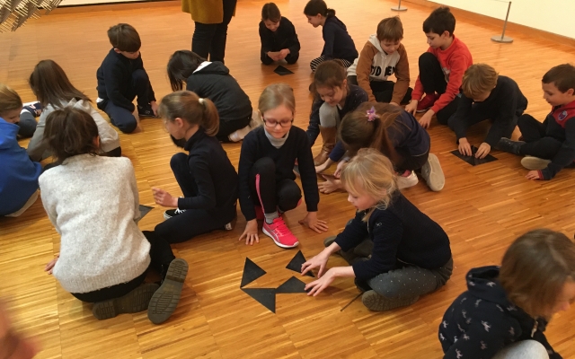 Le 17 février, les élèves de la classe de CE1/CE2 sont allés au Musée de Grenoble pour jouer avec les formes présentes dans certains tableaux modernes de la galerie. Après observation de peintures ou sculptures, les élèves ont pu s’exprimer à la manière de Piet Mondrian, de Kandinsky , de François Morellet, Jean Dubuffet ou de Richard Long.
