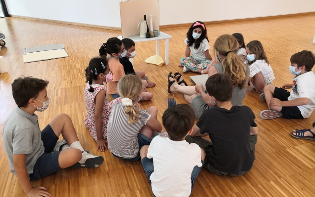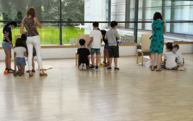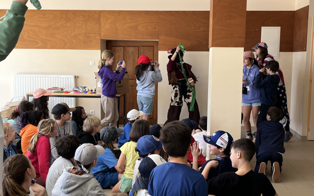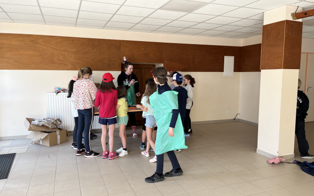 Atelier théâtre avec Gabriel. Chaque groupe représente différents objets liés à deux domaines professionnels : les pompiers et un garage. Alors avez-vous deviné qui fait quoi ?
