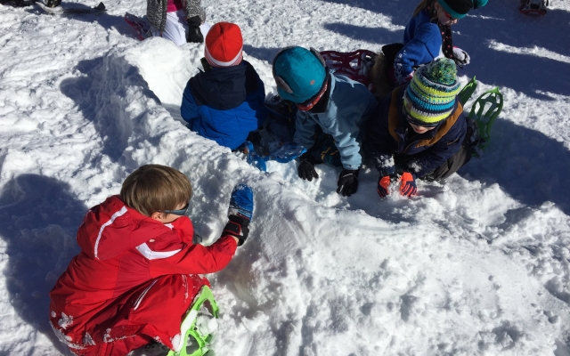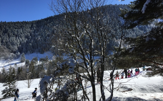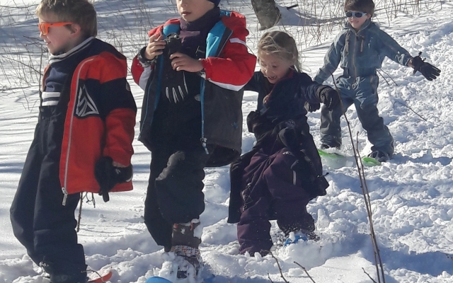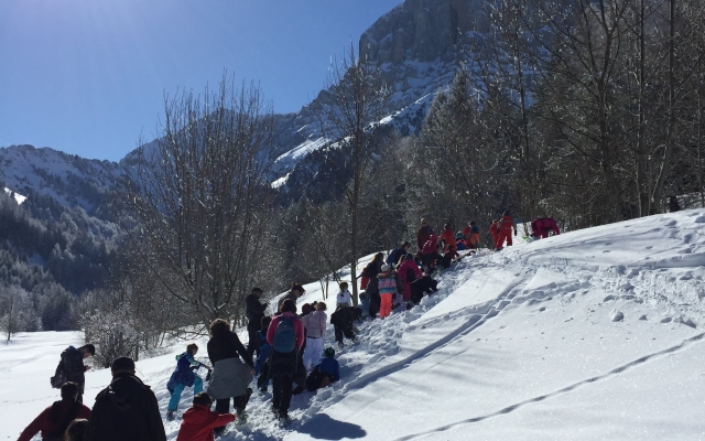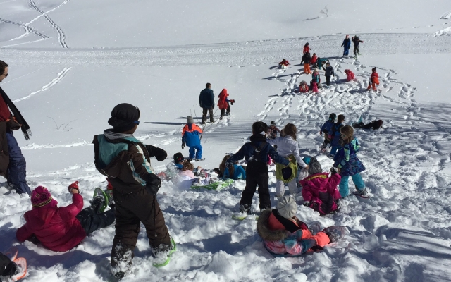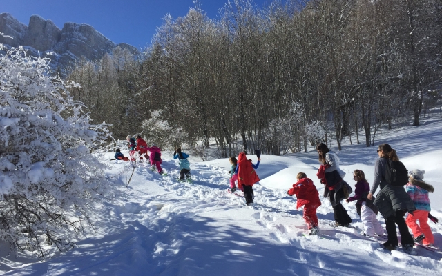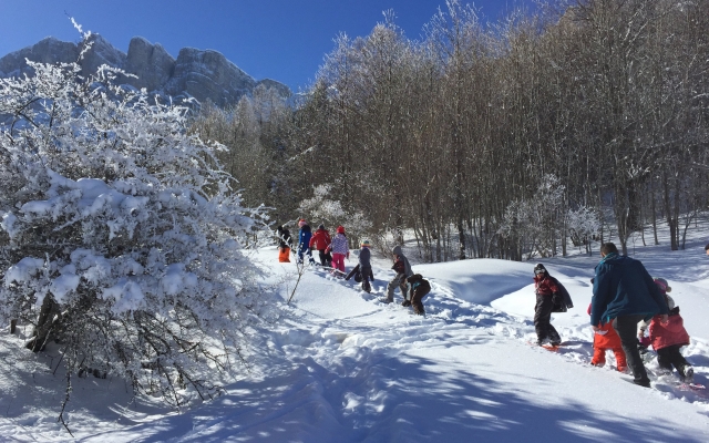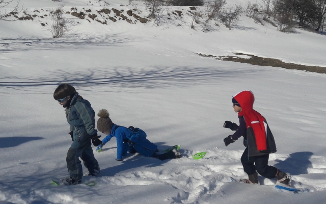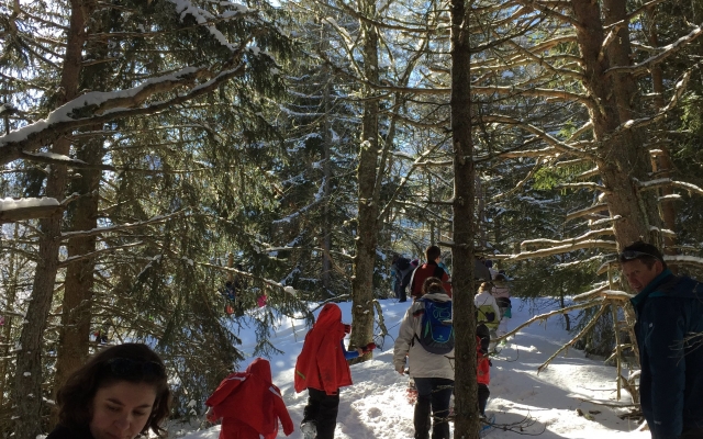Cette année encore, les élèves des classes de CP et CP/CE1 ont pu profiter des joies de la neige (fraichement tombée) pour une sortie raquettes sous le soleil à Gresse en Vercors. Accompagnés de Benoît, de leurs enseignantes et de parents, ils s’en sont données à coeur joie en pleine nature!