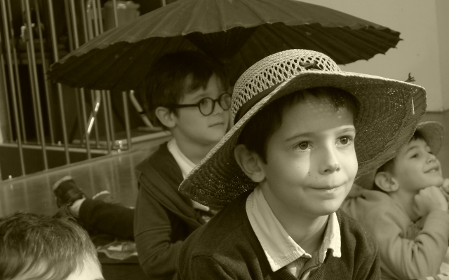Lors d’un atelier au musée de peinture de Grenoble, les enfants ont réalisé un « passe-tête » en s’inspirant de portraits anciens du musée.