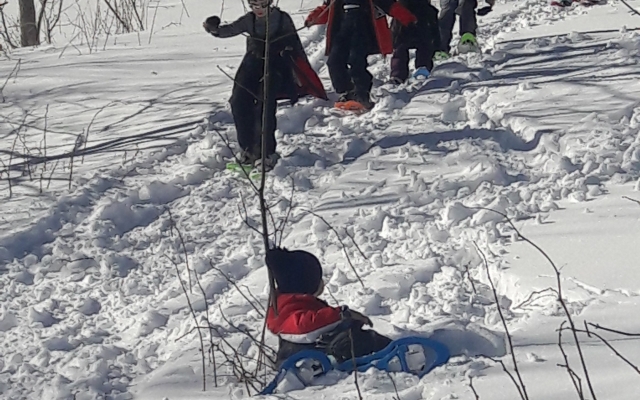 Nous avons innové cette année: tout le monde était masqué pour la sortie raquettes. Les enfants ont bien profité de la neige et sont rentrés ravis… les maitresses aussi!
